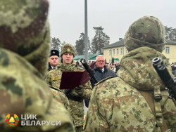 Председатель ЦИК Беларуси Игорь Карпенко посетил в этот день По лоцкий пограничный отряд. З десь военную клятву на верность белорусскому народу принесли 160 пограничников, которые в скором времени приступят к охране Государственной границы.