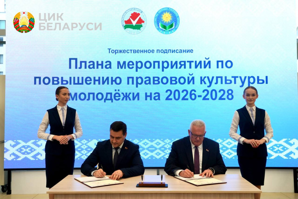 Председатель ЦИК Беларуси Игорь Карпенко и Министр образования Андрей Иванец подписали план мероприятий по повышению правовой культуры молодежи на 2026 - 2028 годы.