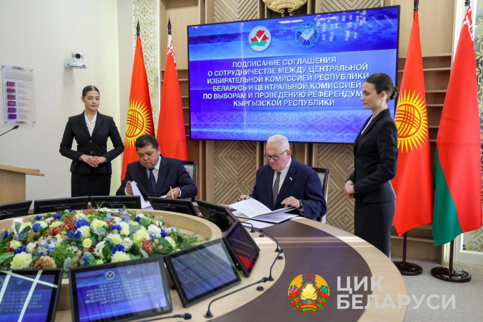 Завершился визит кыргызских коллег подписанием Соглашения о сотрудничестве между ЦИК Беларуси и ЦИК Кыргызстана, которое откроет новые перспективы по обмену опытом использования современных избирательных технологий, взаимодействию по повышению уровня профессиональной подготовки организаторов выборов и правовой культуры избирателей.
