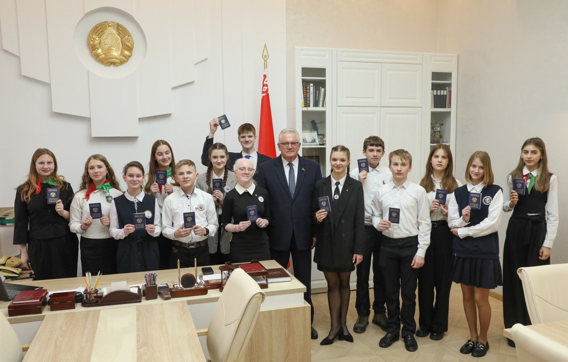 В ходе встречи Председатель Центральной комиссии И.В.Карпенко и первый секретарь Центрального комитета БРСМ А.С.Лукьянов вручили ребятам паспорта гражданина Республики Беларусь.