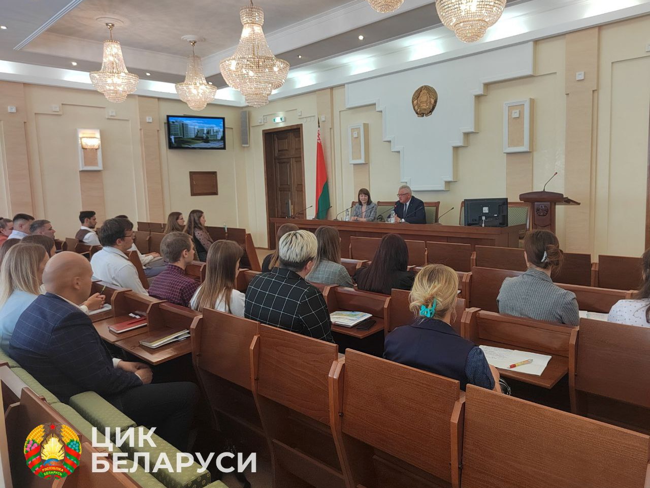 В ходе встречи говорили о политической системе страны, новациях избирательного законодательства и ходе работы по подготовке к проведению выборов в единый день голосования, порядке формирования Всебелорусского народного собрания.